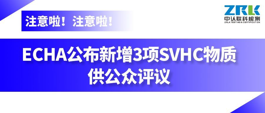 2025年9月1日,歐盟化學(xué)品管理局(ECHA)公布了新一批SVHC咨詢物質(zhì)清單,對(duì)3項(xiàng)潛在的SVHC物質(zhì)展開(kāi)公眾評(píng)議。公眾評(píng)議于2025年10月16日結(jié)束,在此期間各利益相關(guān)方均可向ECHA提交評(píng)議意見(jiàn)。ECHA將會(huì)對(duì)公眾提交的反饋意見(jiàn)進(jìn)行評(píng)議,如這3項(xiàng)物質(zhì)通過(guò)評(píng)議將被加入SVHC正式候選清單。