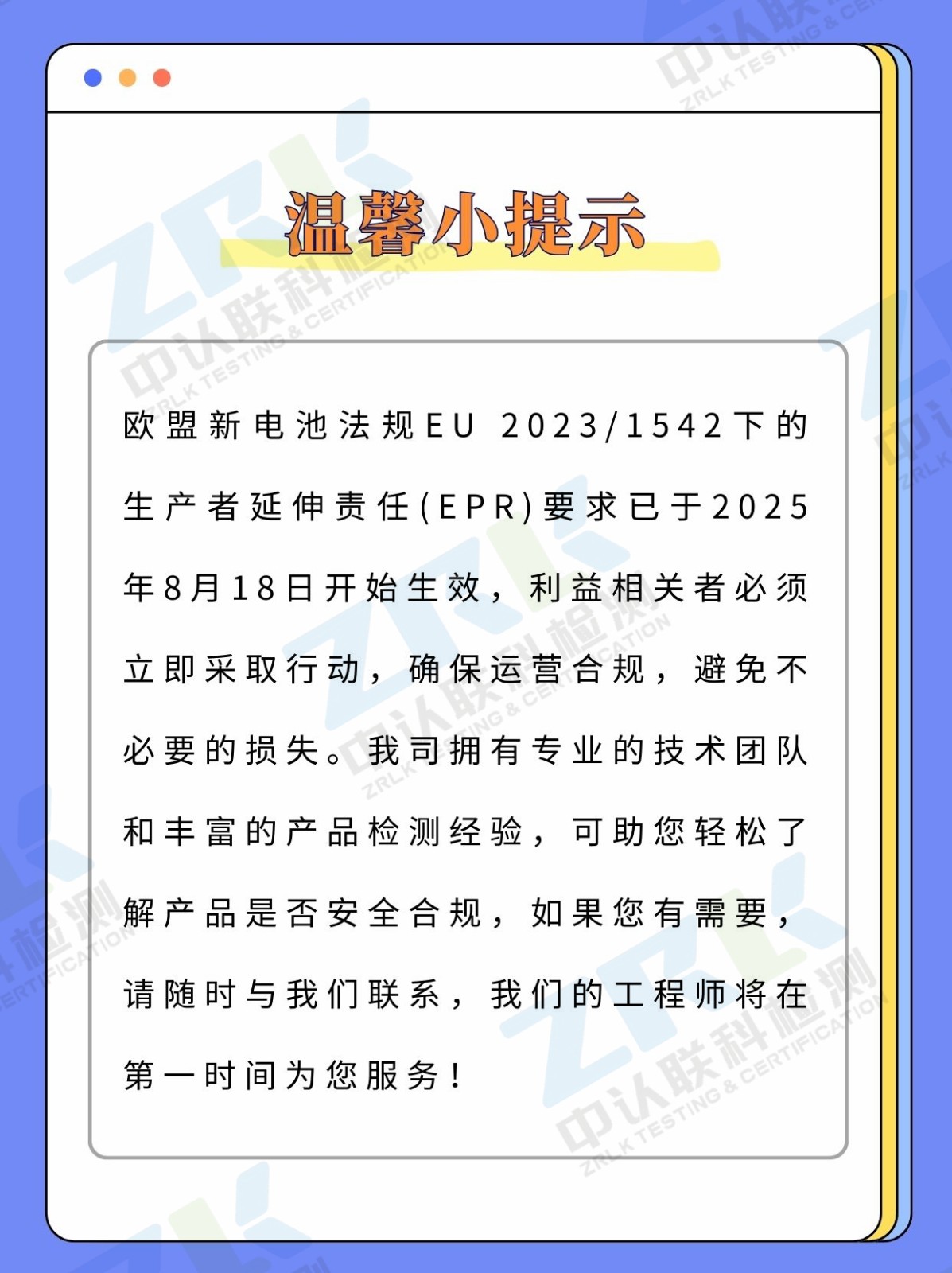 注意!歐盟新電池法規下的生產者延伸責任(EPR)要求已于2025年8月18日正式生效!